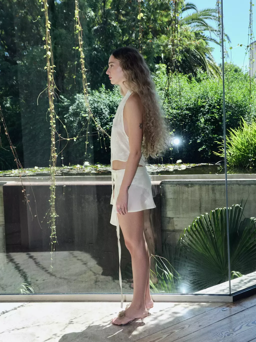 Blusa de seda con espalda descubierta y lazo tipo corbata anexado.